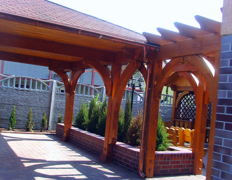 Pour le toit, plusieurs options sont possibles : le toit plat est permis lorsque le carport est implanté contre une façade ; sinon la toiture peut être à pente unique ou à deux pans, dans ce cas la structure bois présente un pignon en façade avant et arrière. Une sous-toiture en volige peut également venir finir l’ouvrage.